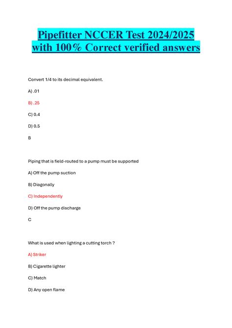 Download NCCER PIPEFITTER TEST AND ANSWER [PDF DOWNLOAD] PDF